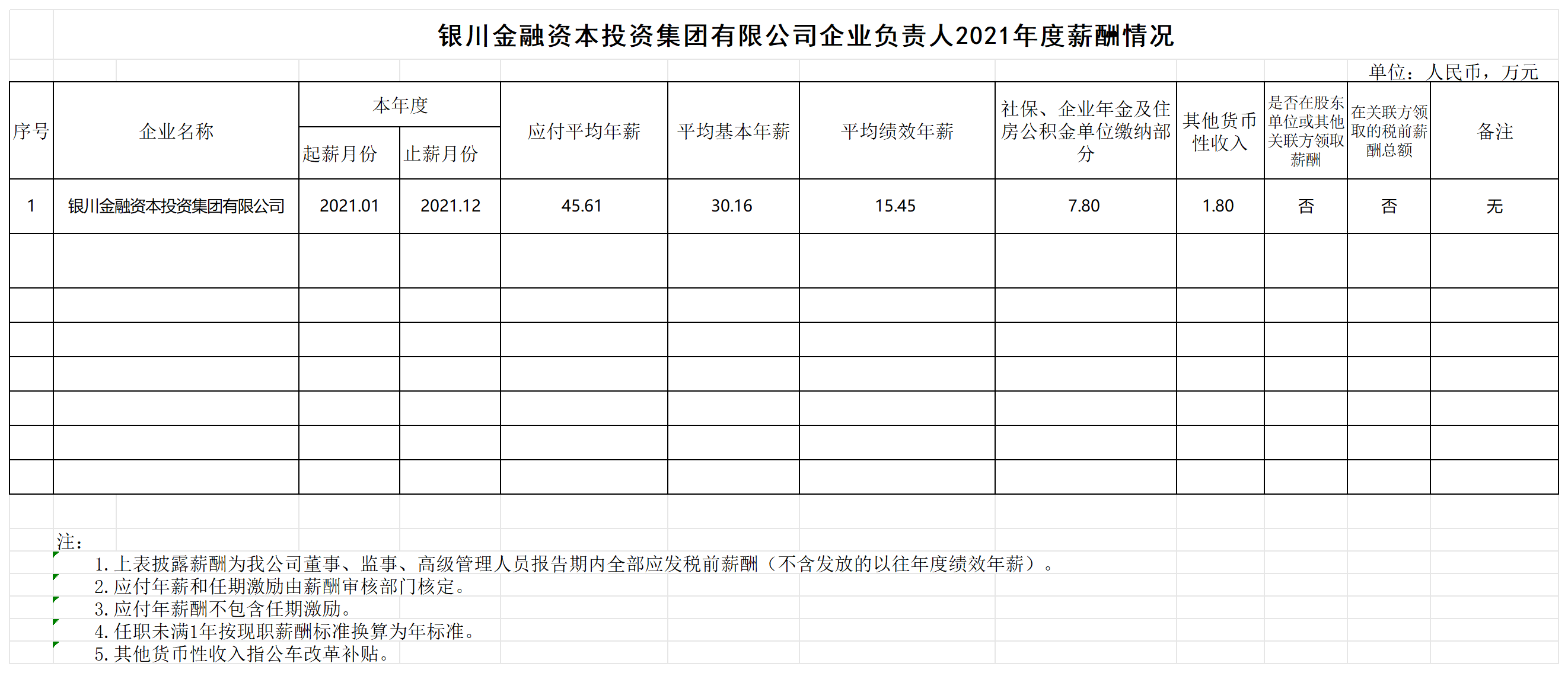 銀川金投集團(tuán)國(guó)有企業(yè)負(fù)責(zé)人2021年度薪酬情況